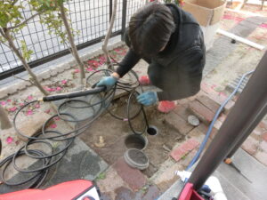 と言うと、高圧洗浄機を使って排水管を