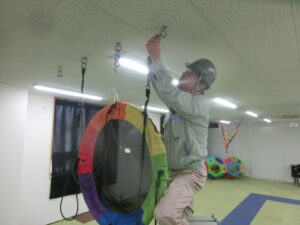 新しく交換した金物にブランコを取り付けたら、