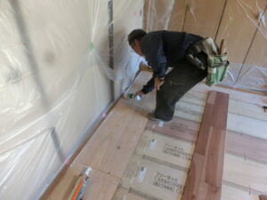 床暖房を付けてフロアを敷いています。