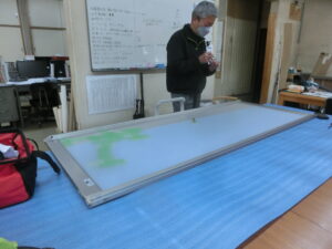 ガラスがカット出来たら、いよいよ組付けです。