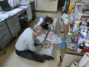 特殊なカッターを使って慎重に作業します。